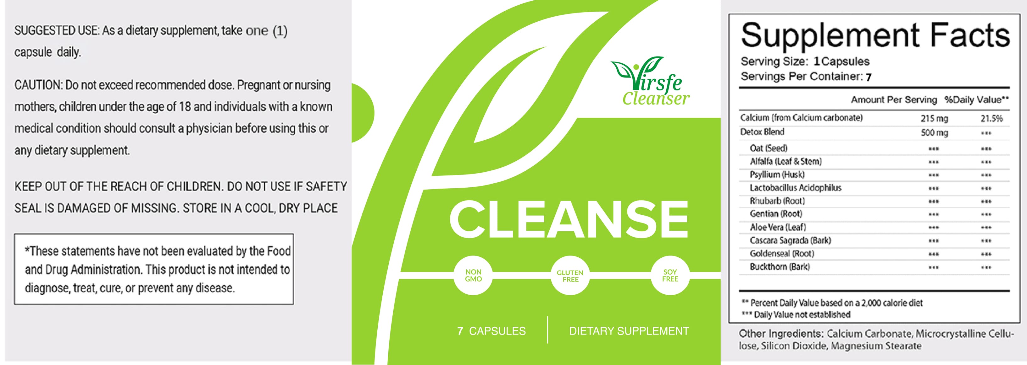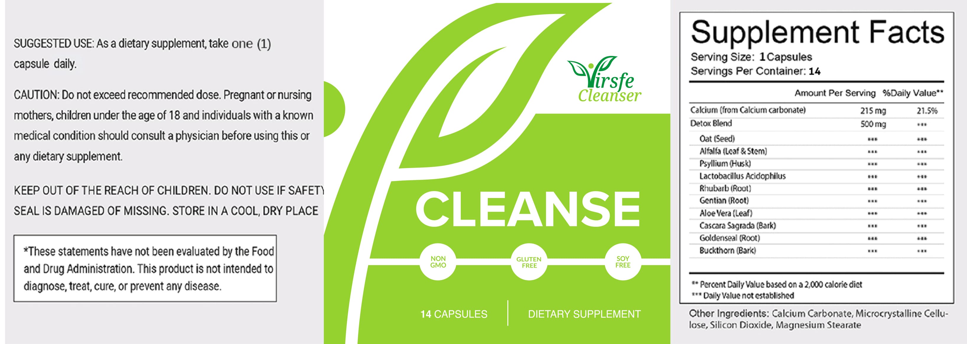 Virsfe Cleanser is a detox supplement designed to help support your body's natural detoxification processes. Formulated with high-quality ingredients, it may assist in eliminating toxins and promoting overall wellness. Virsfe Cleanser works effectively when used alongside a balanced diet and regular physical activity, and it is intended for adults over the age of 18 who are serious about their health and wellness journey.